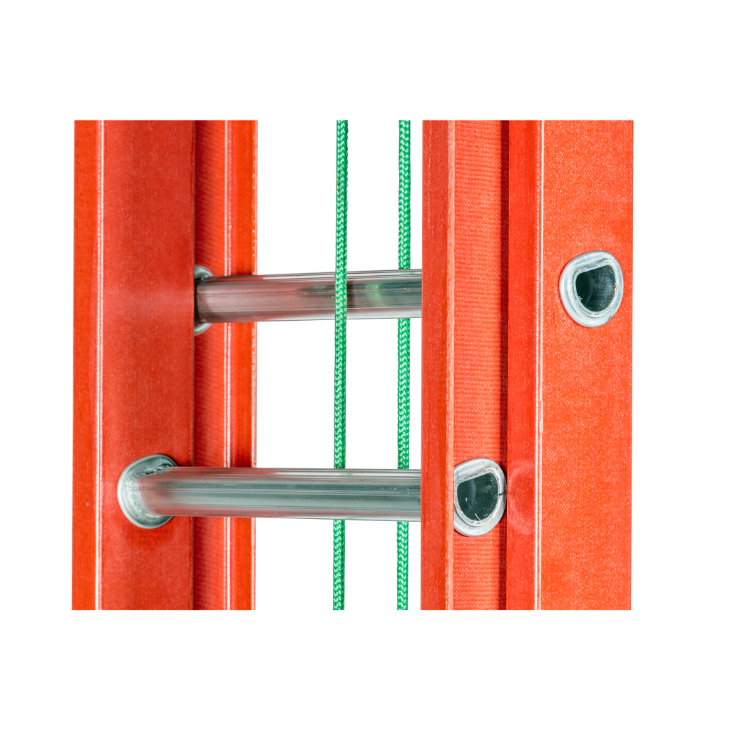 Os perfis laterais das escadas são confeccionados em fibra de vidro utilizando o moderno processo de Pultrusão.